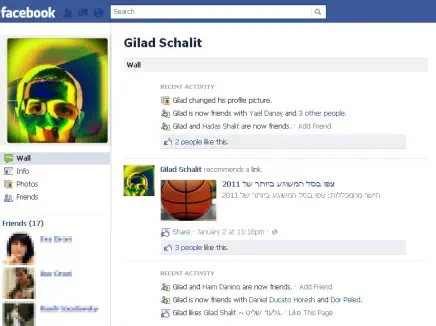 בשלב הזה לא ניתן להציע לגלעד חברות, לשלוח לו הודעות, לכתוב לו על הקיר או להגיב.