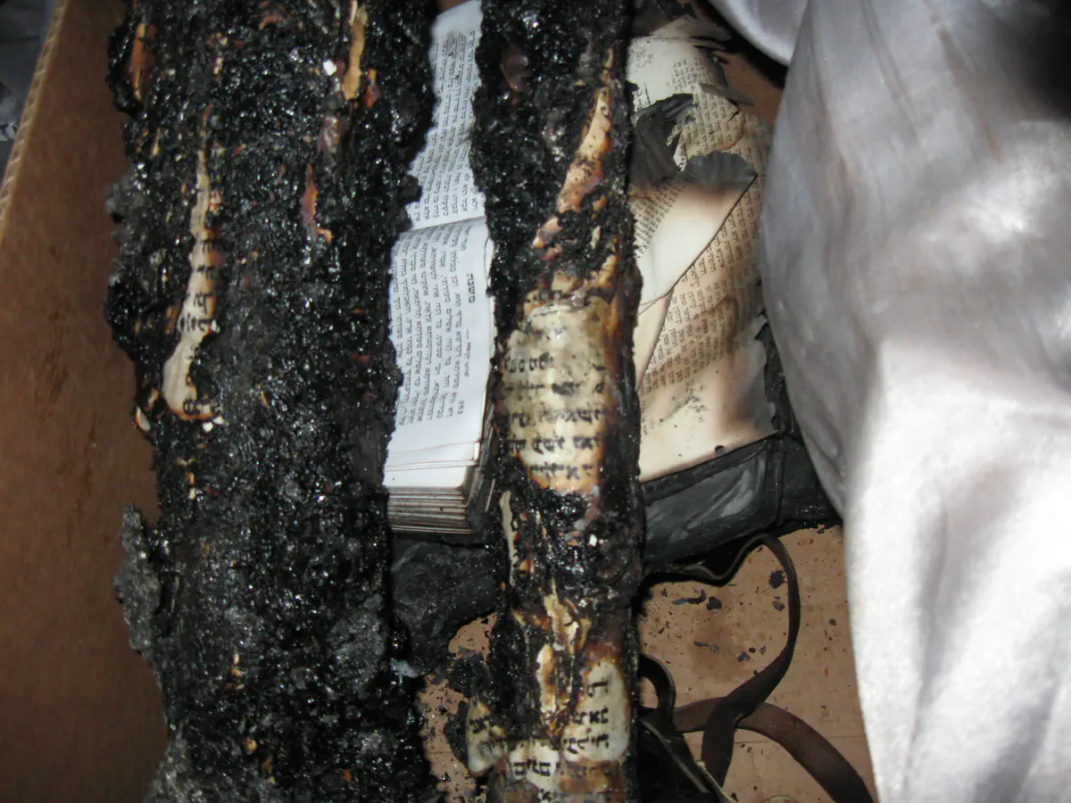 ברודצקי מספר בכאב שרובו של הספר נשרף, "לאחר העצרת נצא בשיירה לעבר בית העלמין שליד שער מנשה ונקיים מסע הלוויה לספר התורה. רוב ספר התורה נשרף אך עדיין רואים חלק מהפרשות. על פי המסורת יש לטמון את הספר בכד של חרס ובהמשך תוקם מצבה מיוחדת מעל מקום הקבורה. הספר ייטמן סמוך למימון בן עטר ז"ל, שהיה יהודי שעלה ממרוקו והיה ידוע שהוא תלמיד חכם ויקברו אותו לידו".