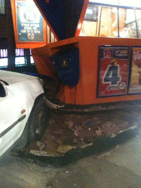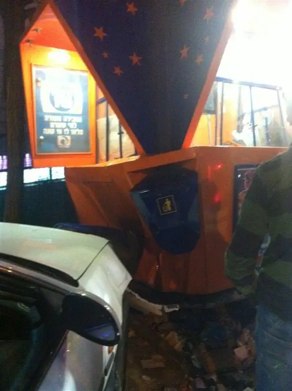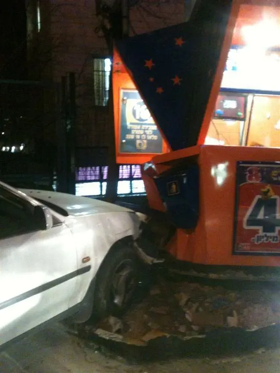 רכב פרטי התנגש בדוכן מפעל הפיס והזיזו ממקומו, איש לא נפגע.