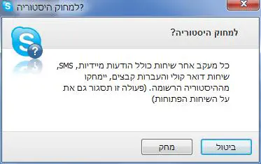 כפי שוודאי שמתם לב, ברירת המחדל שלSkype לשמירת ההיסטוריה שלכם הוא "זמן בלתי מוגבל". לחיצה על "נקה היסטוריה" תפתח לכם את החלון הבא: