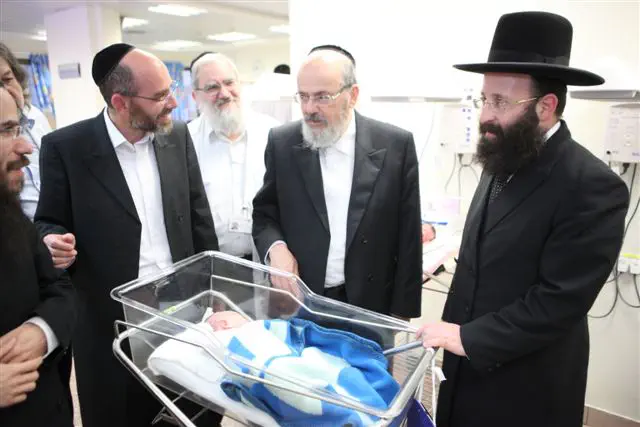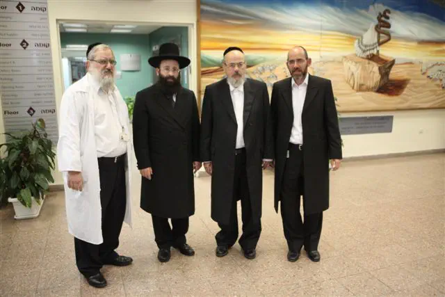 את פני האורח קיבלו נשיא המרכז הרפואי ומייסדו הד"ר משה רוטשילד, מנכ"ל המרכז הרפואי הרב גרשון לידר, סגן המנהל הרפואי והאחראי על האתיקה הרפואי הד"ר מנחם ברייר, סגן המנהל הכללי הר' שמואל בן חיים, נציג רבני ועד ההלכה הרב ישראל ראנד וראש הכולל הרב מיכאל פריינד.