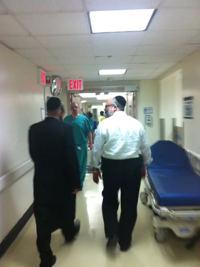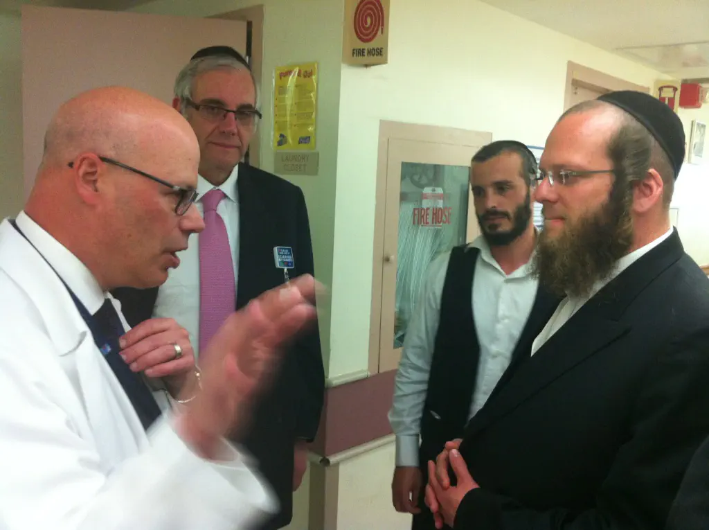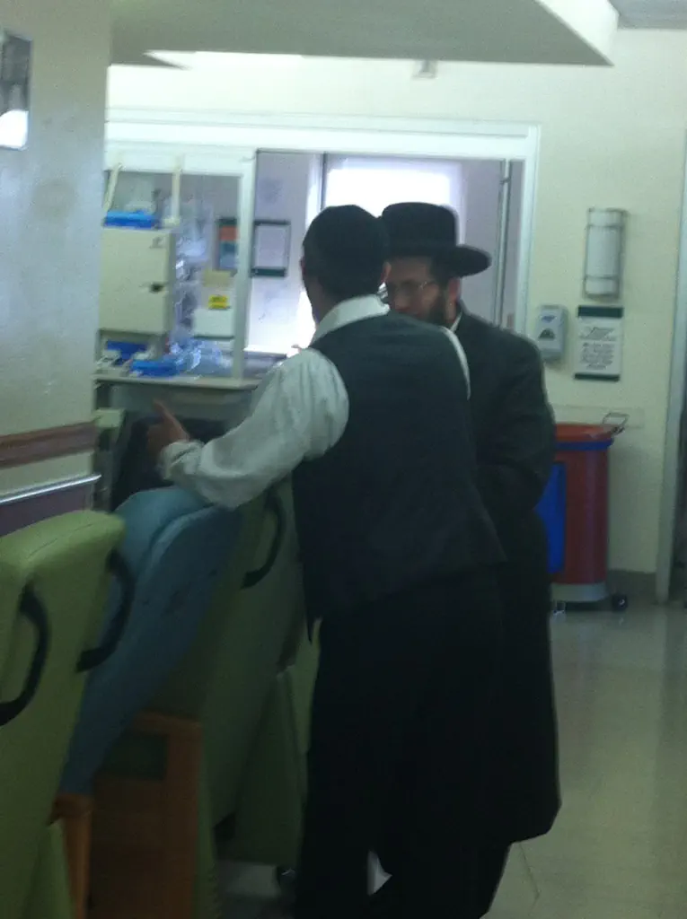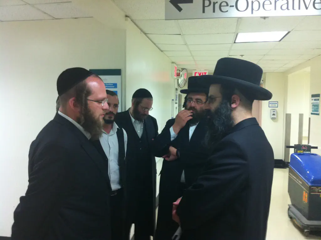 מנכ"ל משרד הקהילה של חסידי ברסלב, אברהם עמר והמשב״ק הרב אברהם משה ברדוגו, שהגיעו בטיסה מהארץ על פי בקשת הצדיק יחד עם משלחת מהנהלת המוסדות, שוהים במהלך כל הזמן בסמוך לחדרו של הצדיק בבית החולים. ביום ראשון סייעו בידי הצדיק בלימוד הדף היומי, זמן קצר לאחר הניתוח.