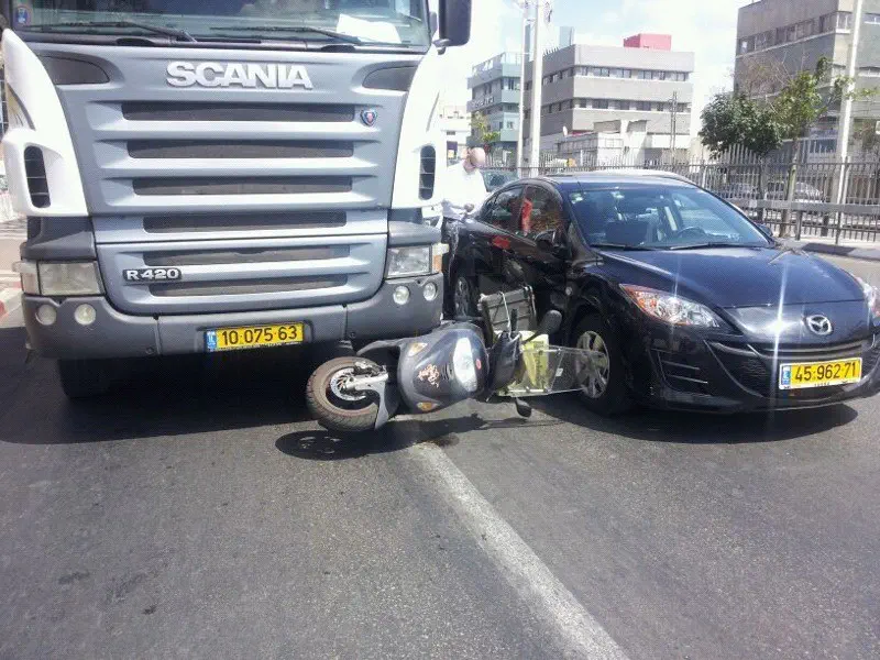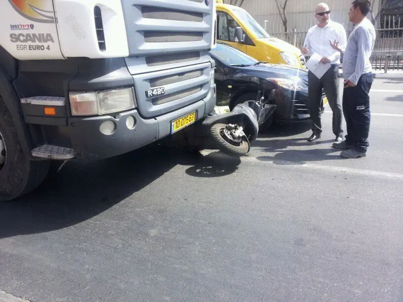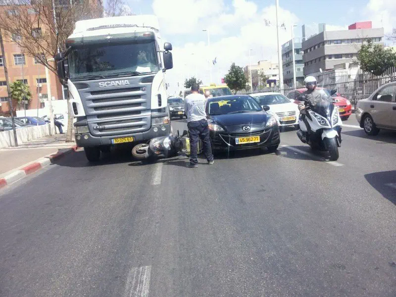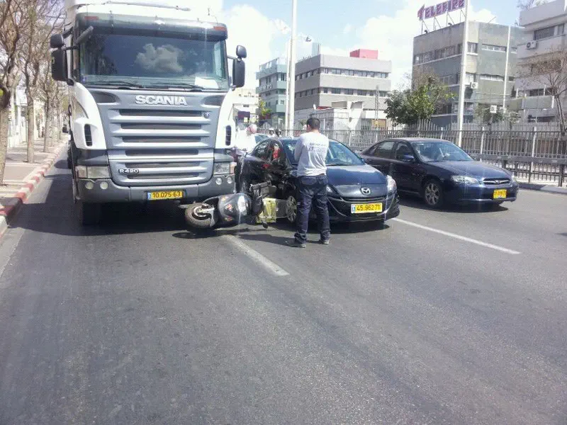 נס בפתח תקווה. חובשי 'איחוד הצלה' הוזעקו היום (חמישי) לתאונה דרכים ברחוב ז'בוטינסקי פינת שנקר בפתח תקוה. למוקד הגיע דיווח על אופנוע שנלכד מתחת למשאית.