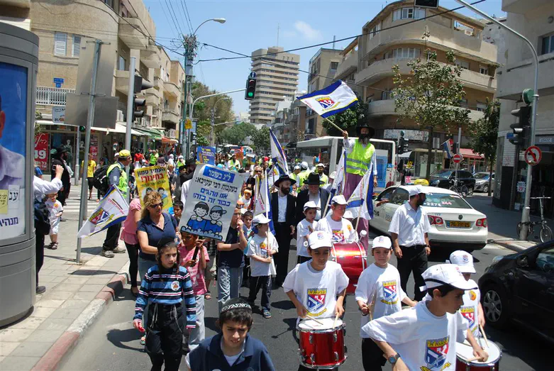 הצועדים הניפו דגלים וכרזות הקוראים לחזק את שמירת התורה והמצוות בעיר. בראש התהלוכה צעדו ילדי ת"ת חב"ד 'אהלי מנחם' כשהם מוליכים את הצעדה עם תופים ודגלים. הצעדה התקיימה בהשתתפות ילדים והורים ממרכז העיר מכל הזרמים, ניתן היה לראות ילדים מבי"ס 'בלפור', 'גבריאלה' ו'אומנויות' כשלצדם תלמידים מתלמודי התורה – 'חב"ד', 'בעלז' ו'יסודי התורה' כשהמשותף לכולם הוא: 'רוצים יותר יהדות בתל אביב'.