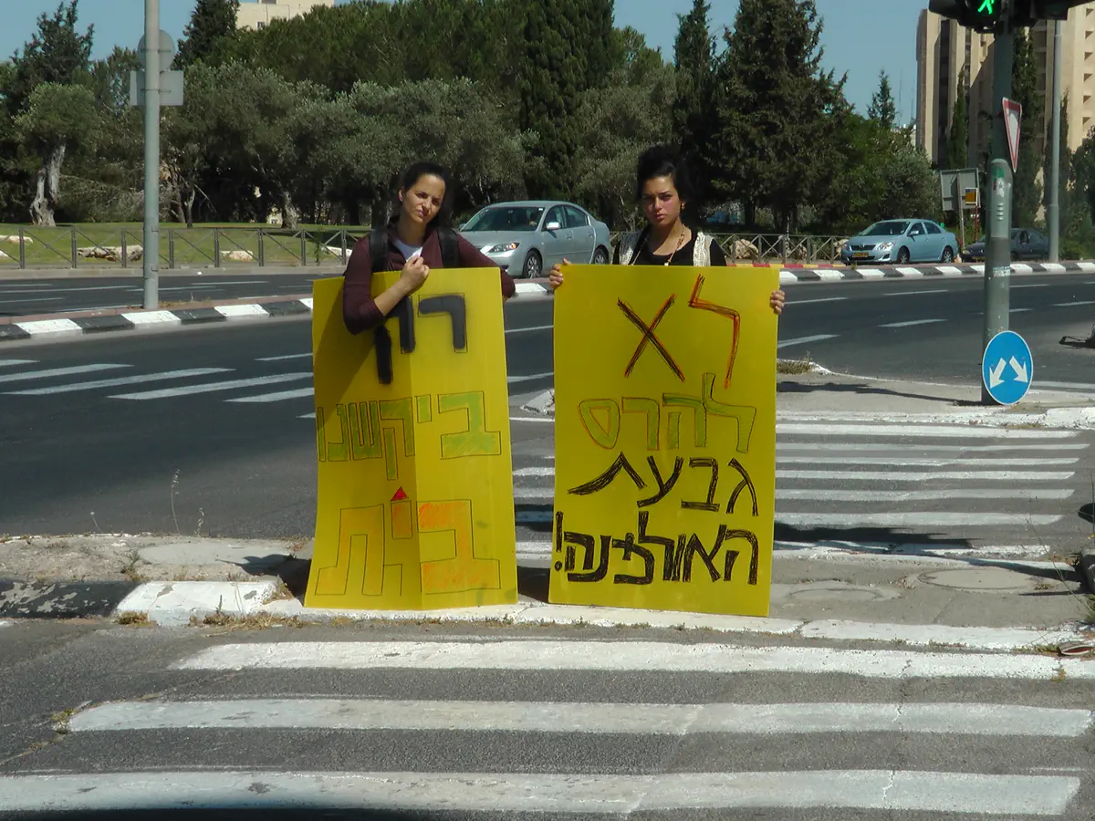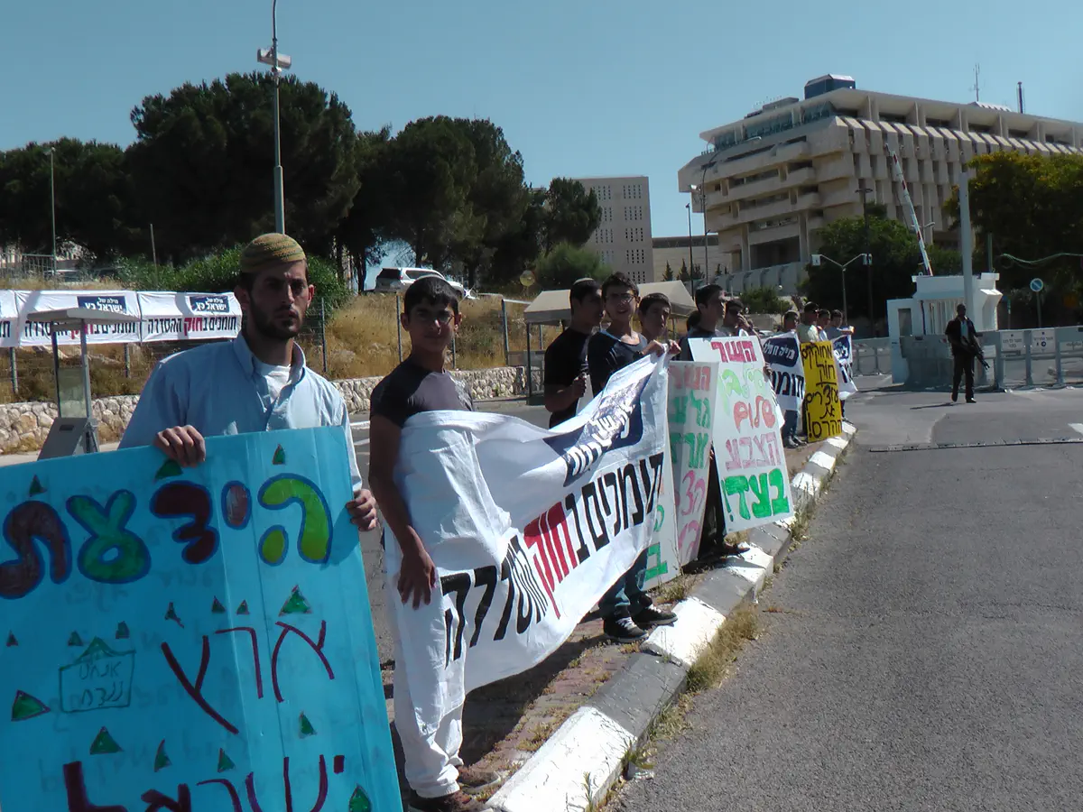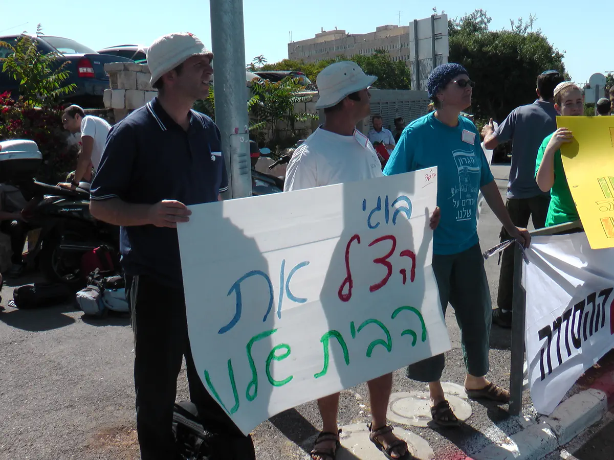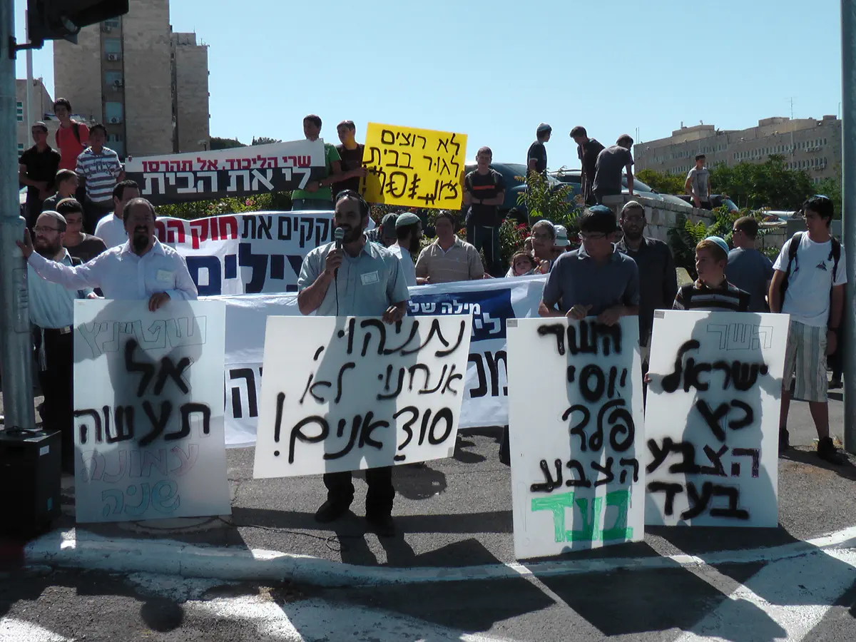 עשרות בני אדם מפגינים מול משרד ראש הממשלה בירושלים בקריאה לשרים להצביע בעד חוק הסדרה שיעלה ביום רביעי בכנסת. הם נושאים שלטים: "לא רוצים לגור בבית מנוסר".