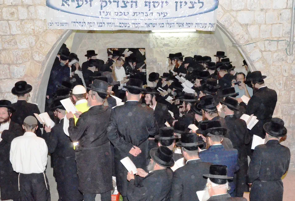 לאחר מכן, יצאה השיירה בראשות האדמו"ר לשכם, לקבר יוסף. בהתרגשות רבה ירד האדמו"ר, מלווה בבניו ובראש ישיבת ויזניץ הרב מנחם ארנסטר, במדרגות המובילות אל מתחם הציון הקדוש ו"עבר לפני התיבה" בפרקי תהילים ובניגוני חסידות.