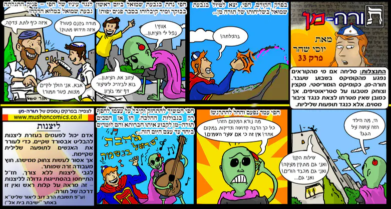 טור הקומיקס "תורה-מן" שהתפרסם בגיליון הקודם של עלון "גילוי דעת" עורר סערה, כאשר גיבור הקומיקס התעמת עם "חפיפניק" שהחזיק בגיליון "מוצ"ש" והועף לגבעת שמואל.