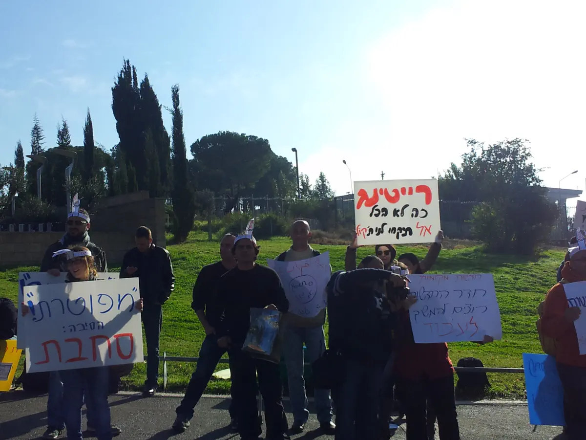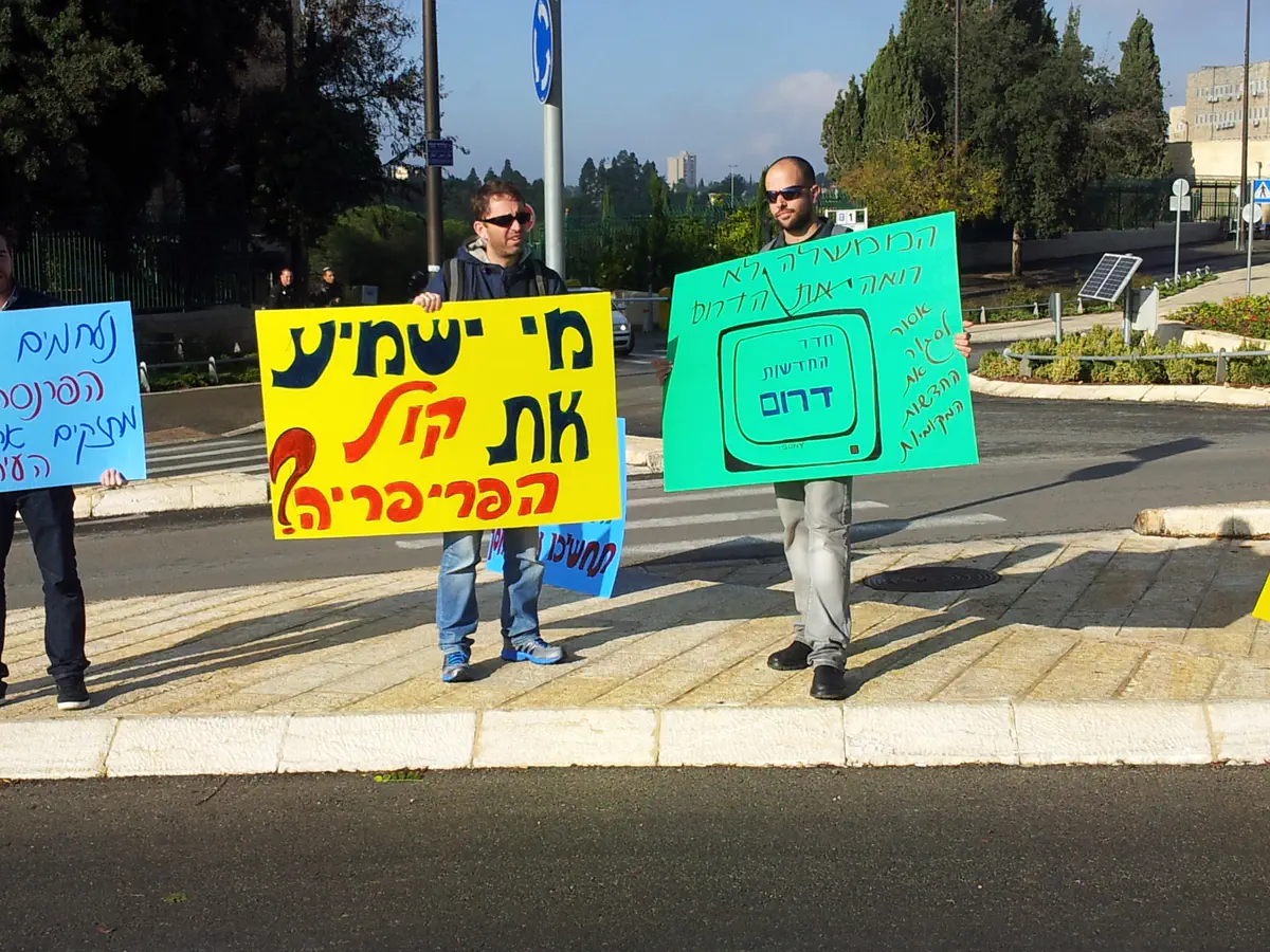 העובדים נשאו שלטים: "רייטינג זה לא הכל", "אל תיקחו לנו את הקול", "אני מפוטרת בגלל אדישות", "נלחמים על הפרנסה-מחזקים את הפריפרייה".