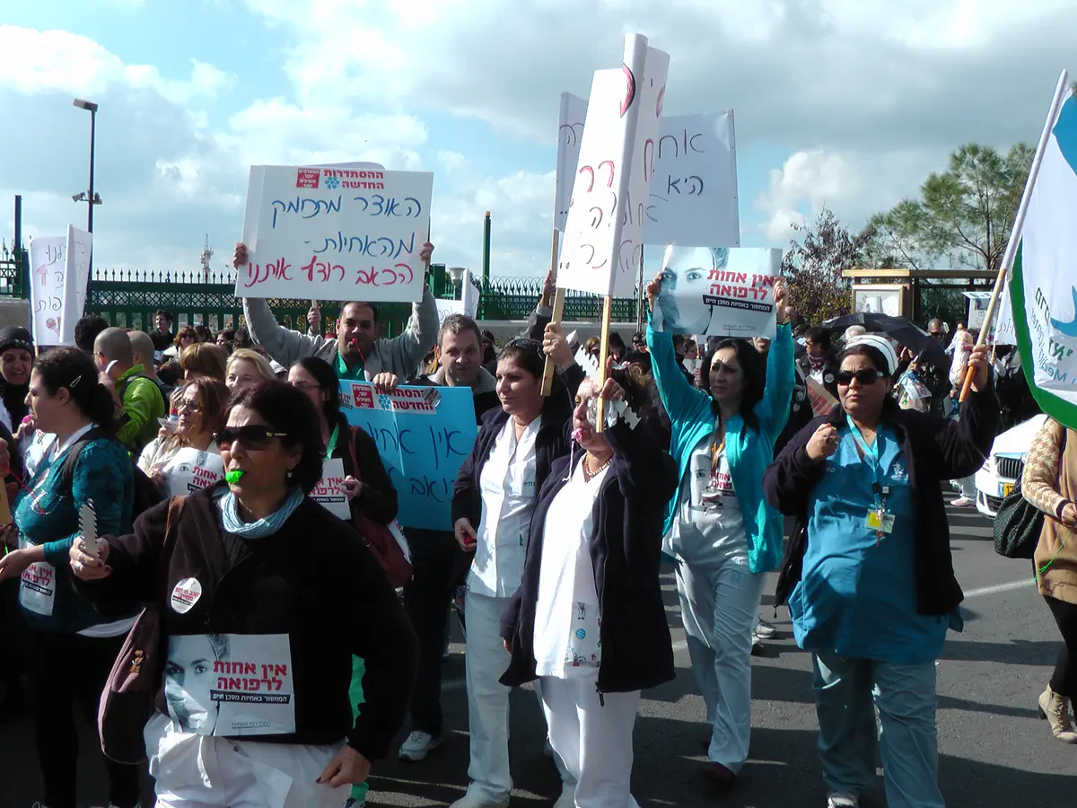 "אני לא מרגישה בנוח להפגין פה", מוסיפה לאה, "הייתי מעדיפה לטפל היום בחולים שלי, אבל אין לנו ברירה אלא להילחם על איכות הטיפול בחולה. אני מזכירה שכולנו יום אחד, אתמול או היום או מחר, נזדקק לשירות הבריאות - המלחמה שלנו היא למען העם".