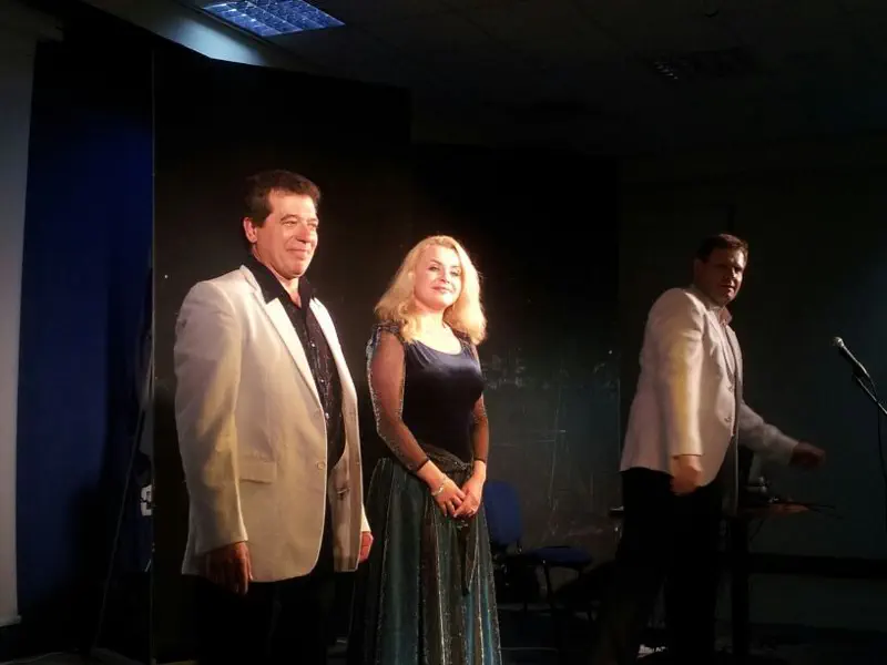 זמרי האופרה הישראלית, גלינה ציפרבלט (סופרן), דימיטרי סימיונוב (טנור) ומיכאל גייסינסקי (בריטון) הופיעו עם מיטב השירים, ברוסית, עברית, איטלקית, אידיש ואנגלית, ועם קטעים ממחזות זמר ואופרות.