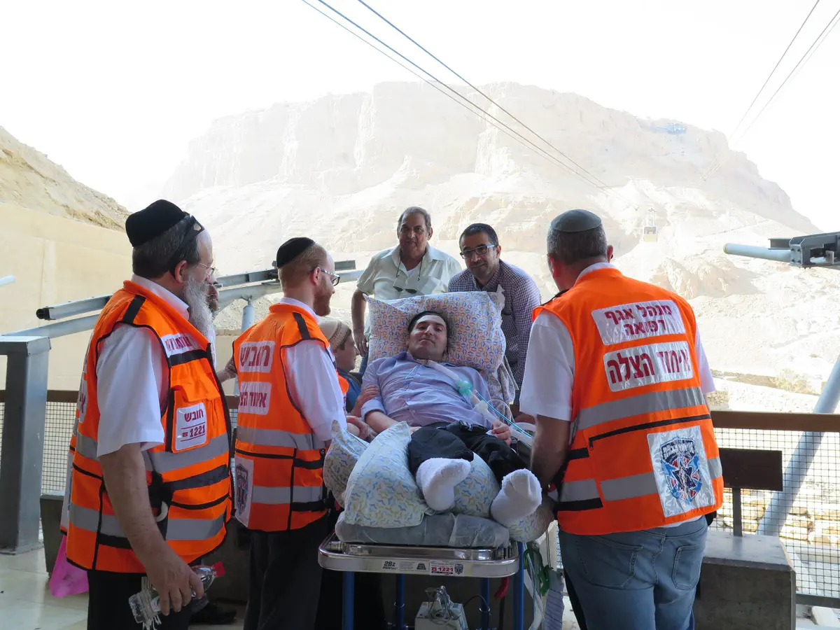 בבוקר יום חמישי שעבר יצאה הקבוצה באמבולנס של "איחוד הצלה" לטיול במדבר יהודה בסיומו הגיעו למצדה. במאמץ רב העלה הצוות המלווה את אלון לרכבל שהביא אותם לפסגה. הם תרו את האתר בשבילי הכורכר המשובשים כאשר הצוות נדרש לא פעם להרים את המיטה עליה שכב אלון.