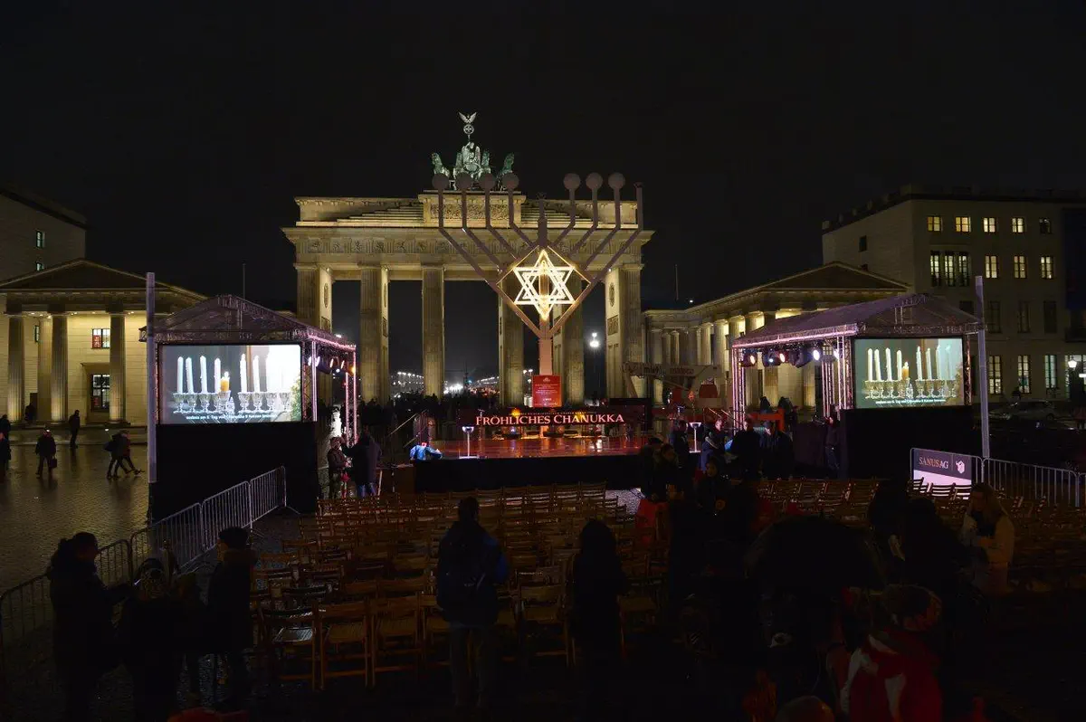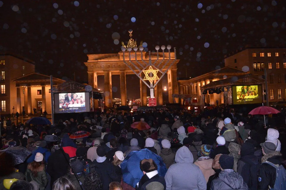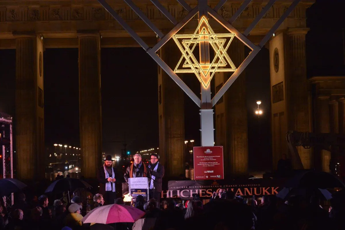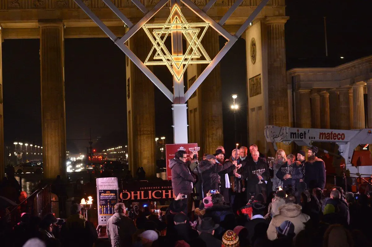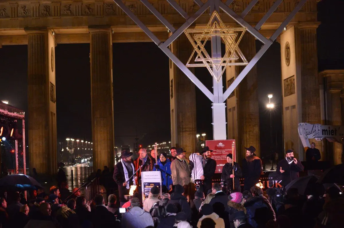 הדלקת נרות חנוכה המסורתית התקיימה שלשום (רביעי) בשער הניצחון הגרמני, שער 'ברנדנבורג'.