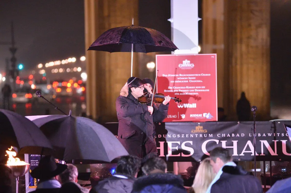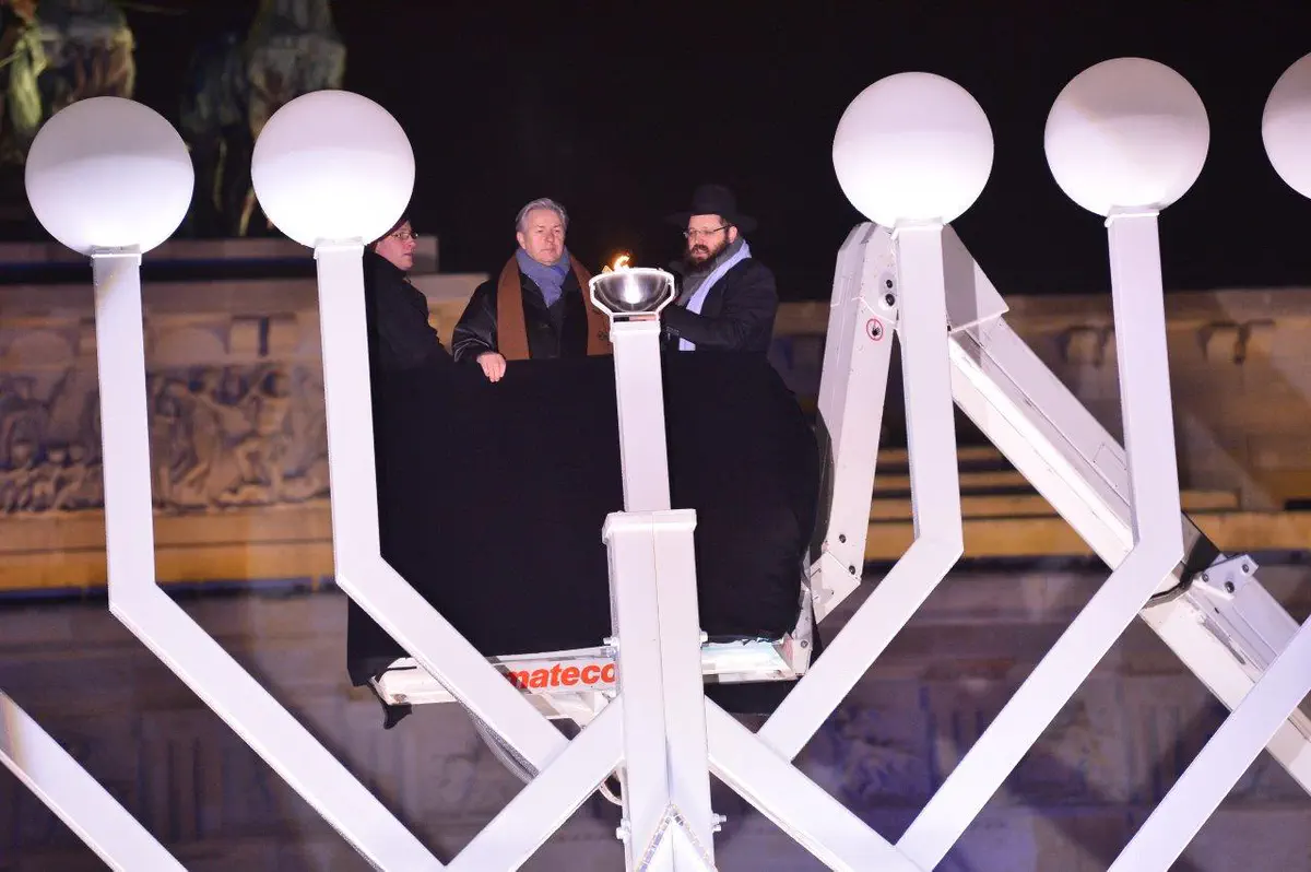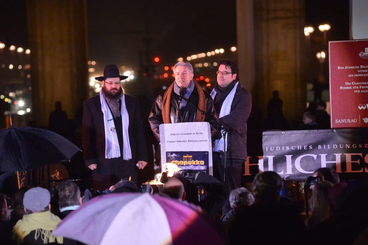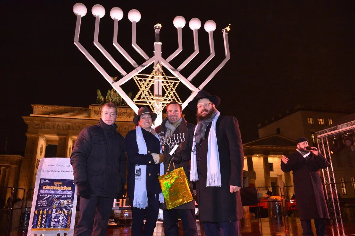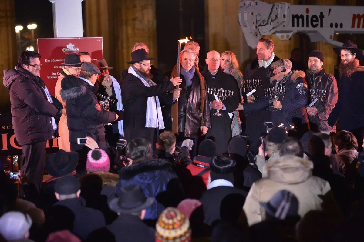 הדלקת נרות חנוכה המסורתית התקיימה שלשום (רביעי) בשער הניצחון הגרמני, שער 'ברנדנבורג'.