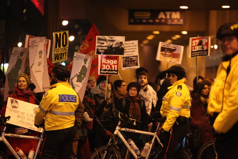 מחוץ למרכז הכנסים נאספו מאות פעילים פרו פלסטינים, שמחו על "מדיניות האפרטהייד" של ממשלת ישראל והקרן הקיימת בשטחי מדינת ישראל והנגב בפרט.