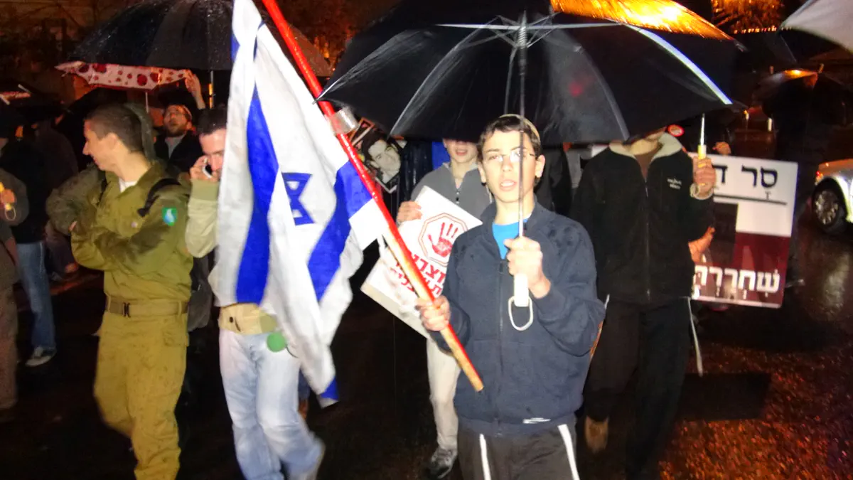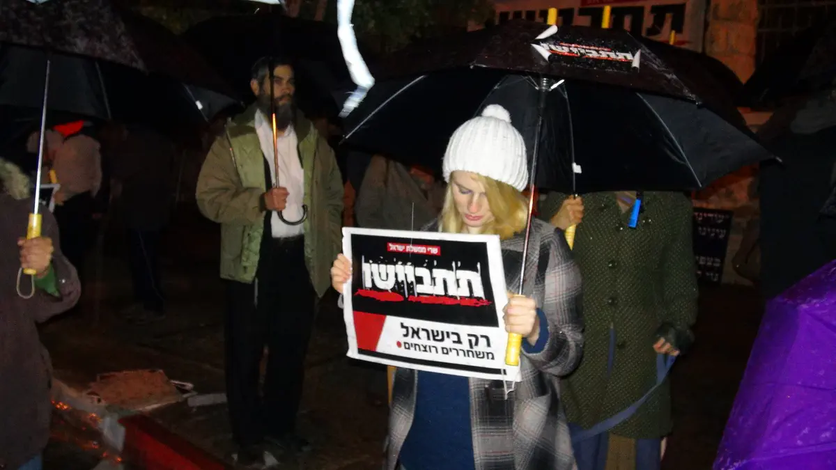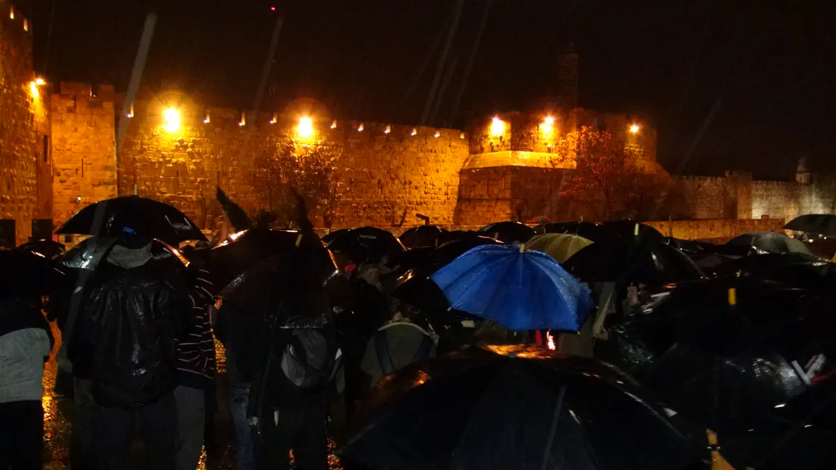 מאות בני אדם השתתפו הערב (שני) ב'צעדת המטריות' בירושלים, במחאה על שחרור המחבלים.