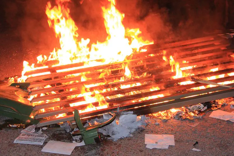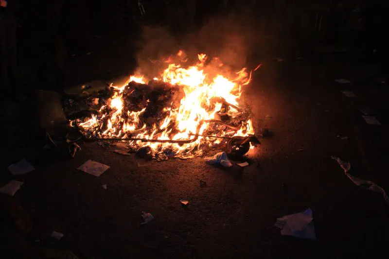 המפגינים הציתו מספר פחי אשפה וחסמו את הכביש למשך דקות ארוכות, כוחות גדולים של המשטרה הגיעו לצומת כדי לשמור על הסדר הציבורי.