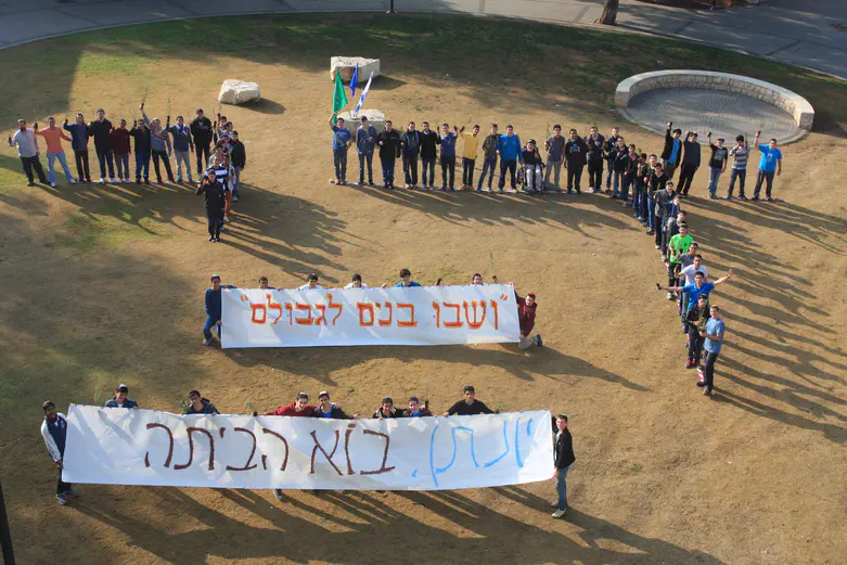 תלמידי כיתות י' בישיבת בנ"ע נחלים קיימו הבוקר (רביעי), כהכנה לט"ו בשבט, מפגן בקריאה לשחרורו המיידי של יהונתן פולארד מן הכלא האמריקאי.
