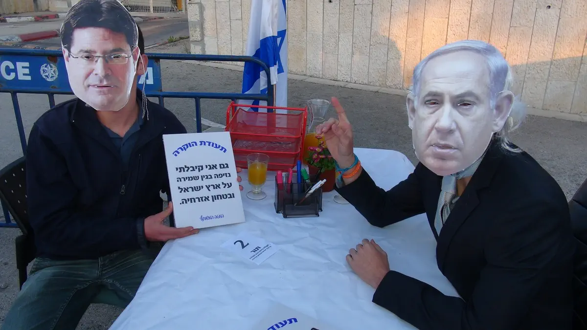 המטה המשותף קיים היום (רביעי) מול משרד ראש הממשלה, מיצג קבלת נזיפה מראש הממשלה.