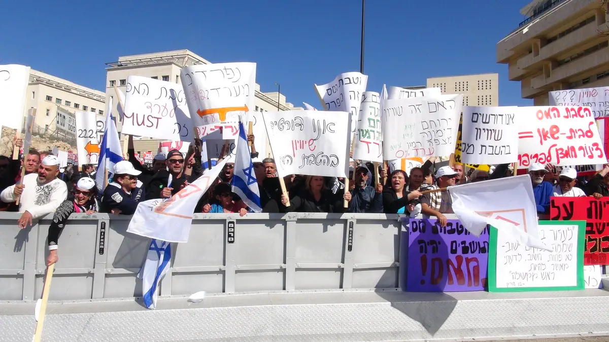 מאות מתושבי ערד הפגינו הבוקר (ראשון) מול משרד ראש הממשלה בירושלים. התושבים דורשים שלא לבטל להם את הטבת המס בעקבות שינוי מפת אזורי העדיפות.