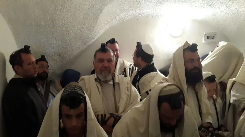 המשתתפים התפללו תפילת שחרית של פורים, קראו במגילת אסתר וסיימו בטעימת פורים קלה בחצר מבנה הציון.