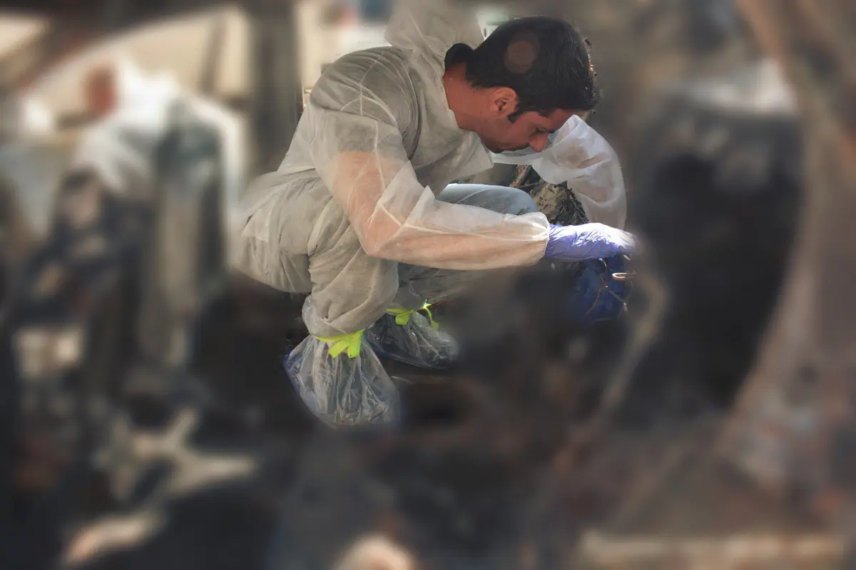 בתמונות נראים החוקרים כשהם מנסים לאסוף "ראיות פורנזיות" שיקדמו את החקירה ואת המאמץ המשותף של זרועות הביטחון לאיתור החטופים.