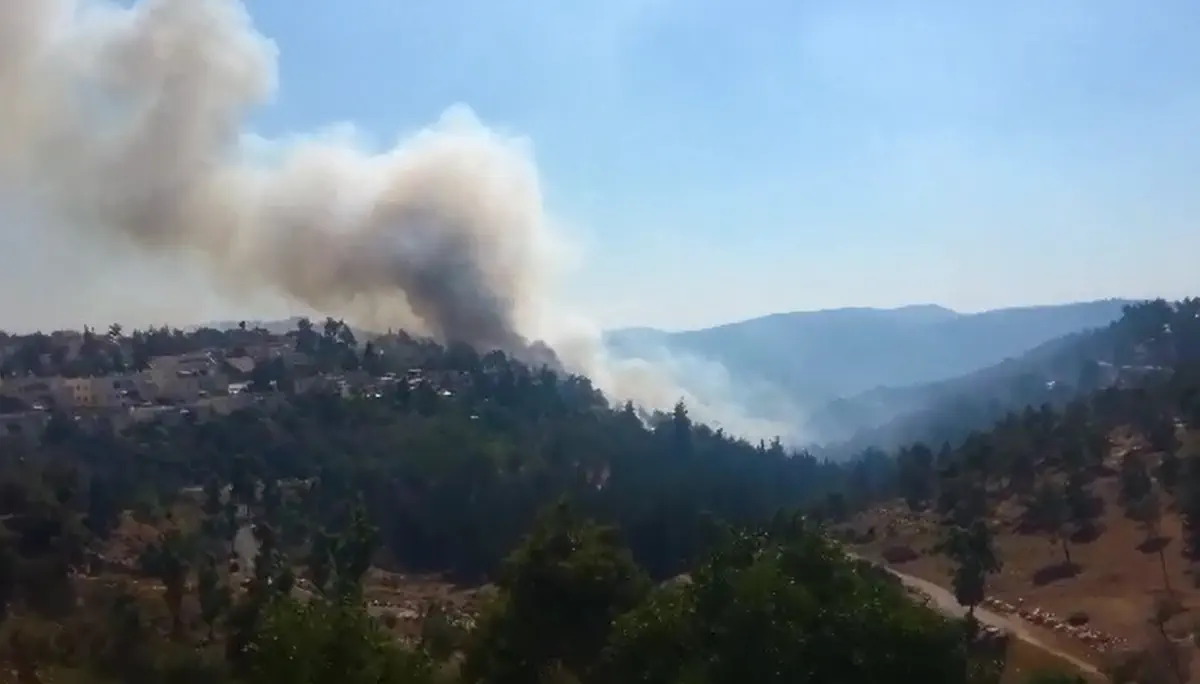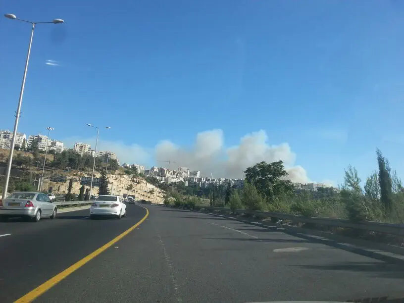שריפת קוצים גדולה פרצה בצהריים (רביעי) סמוך לשכונת עין כרם בירושלים.