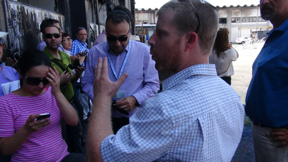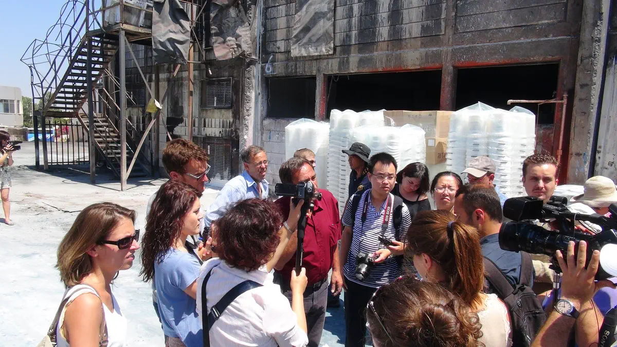 כתבים זרים מכלי תקשורת בכל העולם סיירו אתמול (חמישי) במפעל בשדרות שנשרף כליל מפיצוץ רקטה בשבוע שעבר.