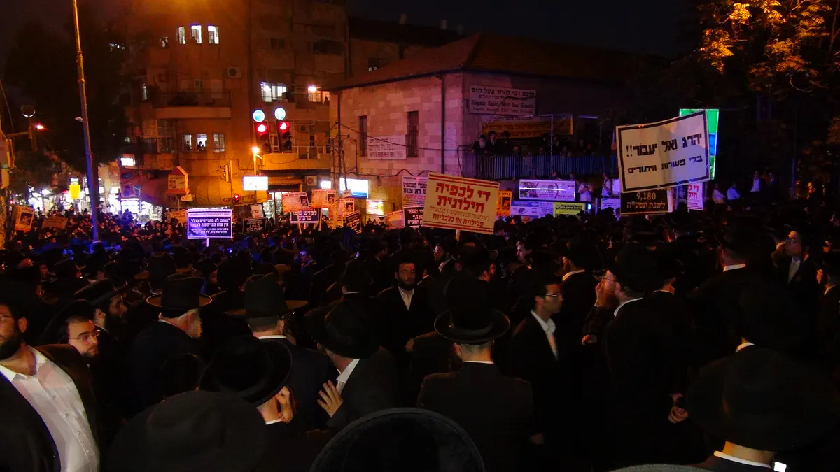 כאלפיים חרדים השתתפו הערב (שלישי) בעצרת מחאה בכיכר השבת בירושלים בעקבות מעצרו של אליהו כהן, תלמיד ישיבה שסירב להתייצב בלשכת הגיוס ולהתחייל ונעצר כעריק.