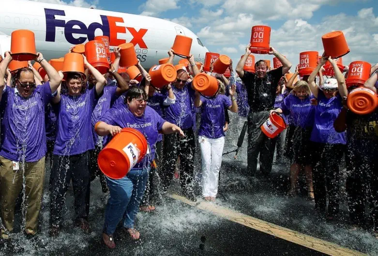 הנהלת חברת FedEx, בראשות המנכ"ל דייב ברונזק נענתה לאתגר דליי הקרח למען המאבק במחלת ה-ALS (ניוון שרירים).