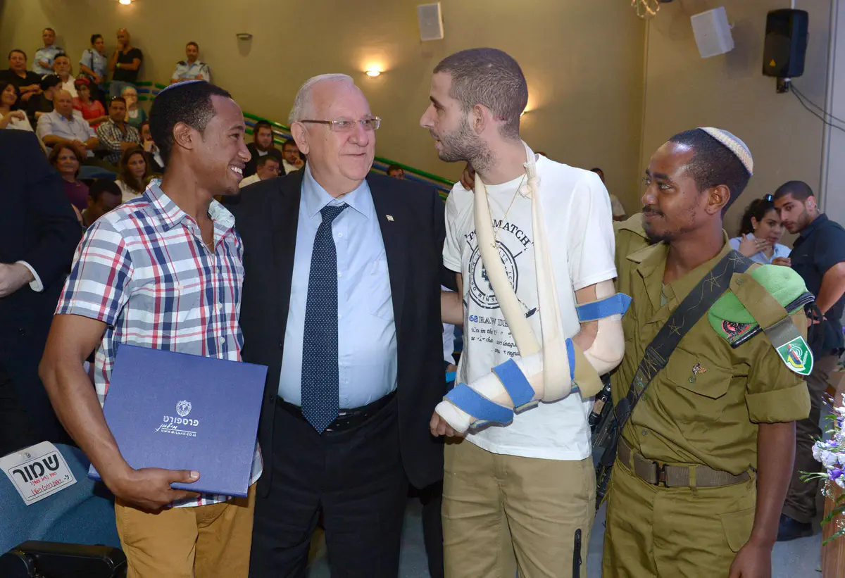 במסגרת האירוע הוענקו לחיילי צה"ל, תושבי בית שמש אשר לחמו ונפצעו במסגרת מבצע "צוק איתן", מגני הוקרה מרשימים. יצוין כי לאחר האירוע המשיך הנשיא לפתיחת שנת הלימודים בתלמוד תורה בעיר.