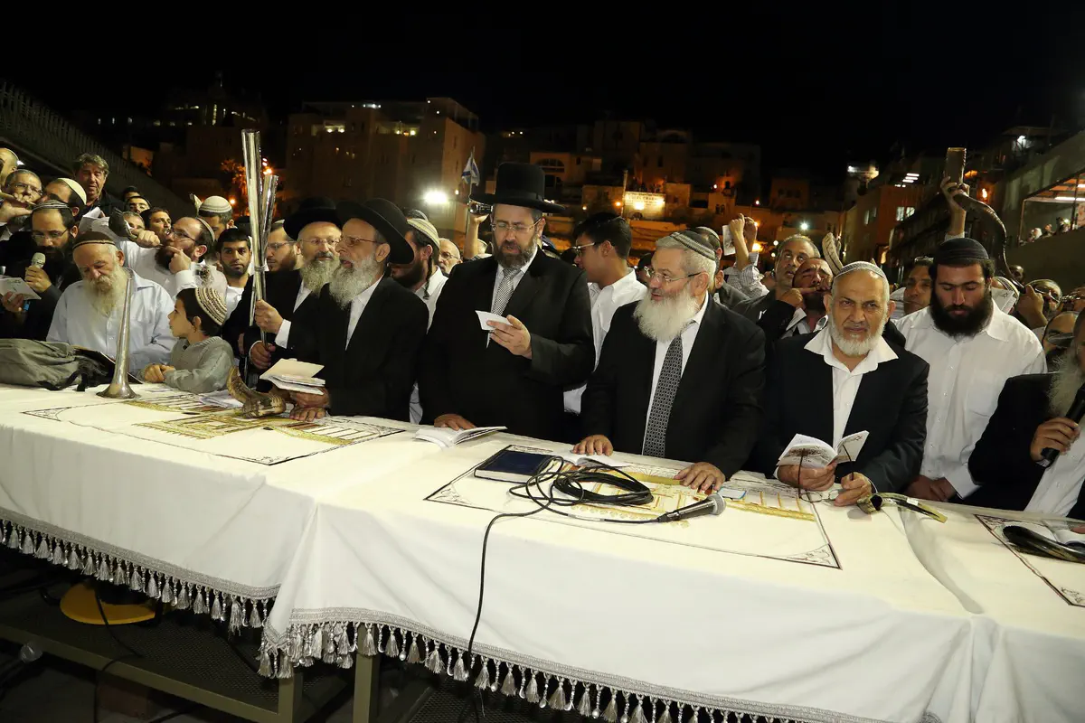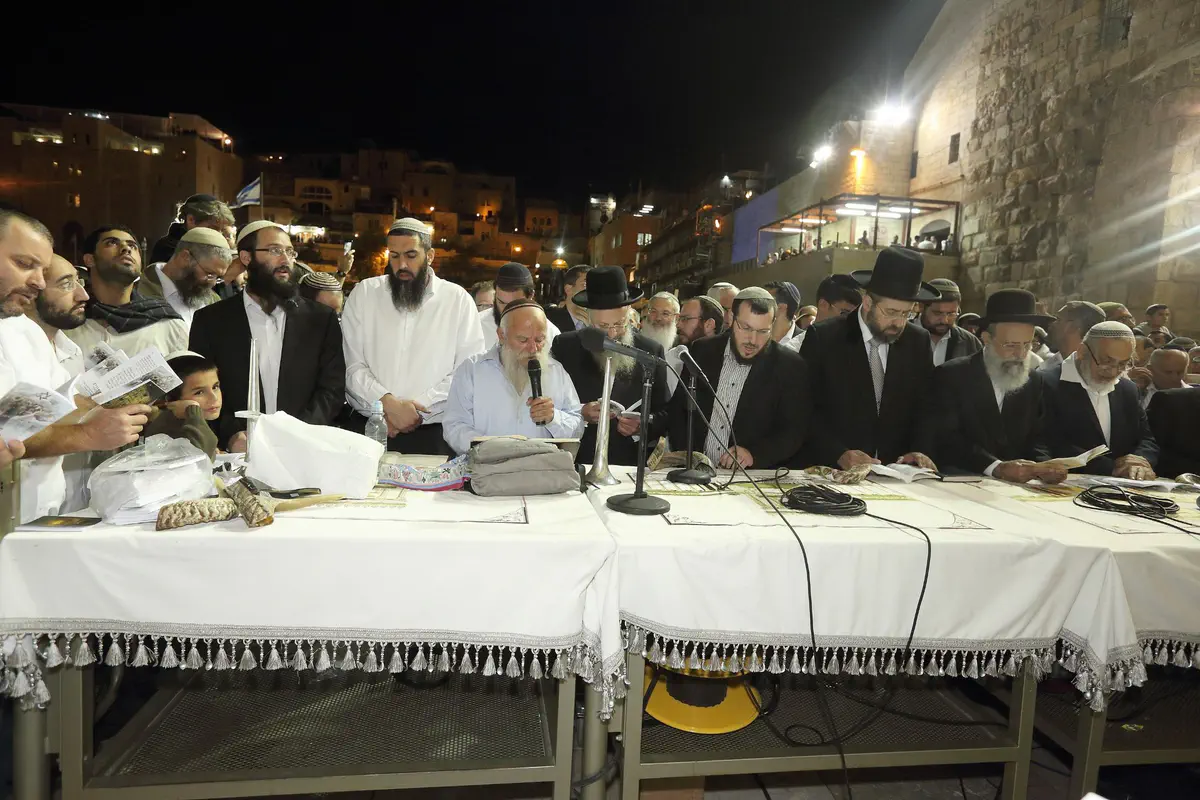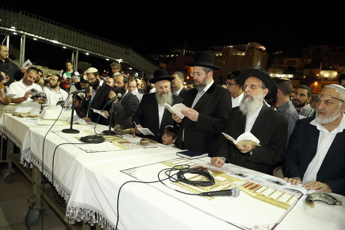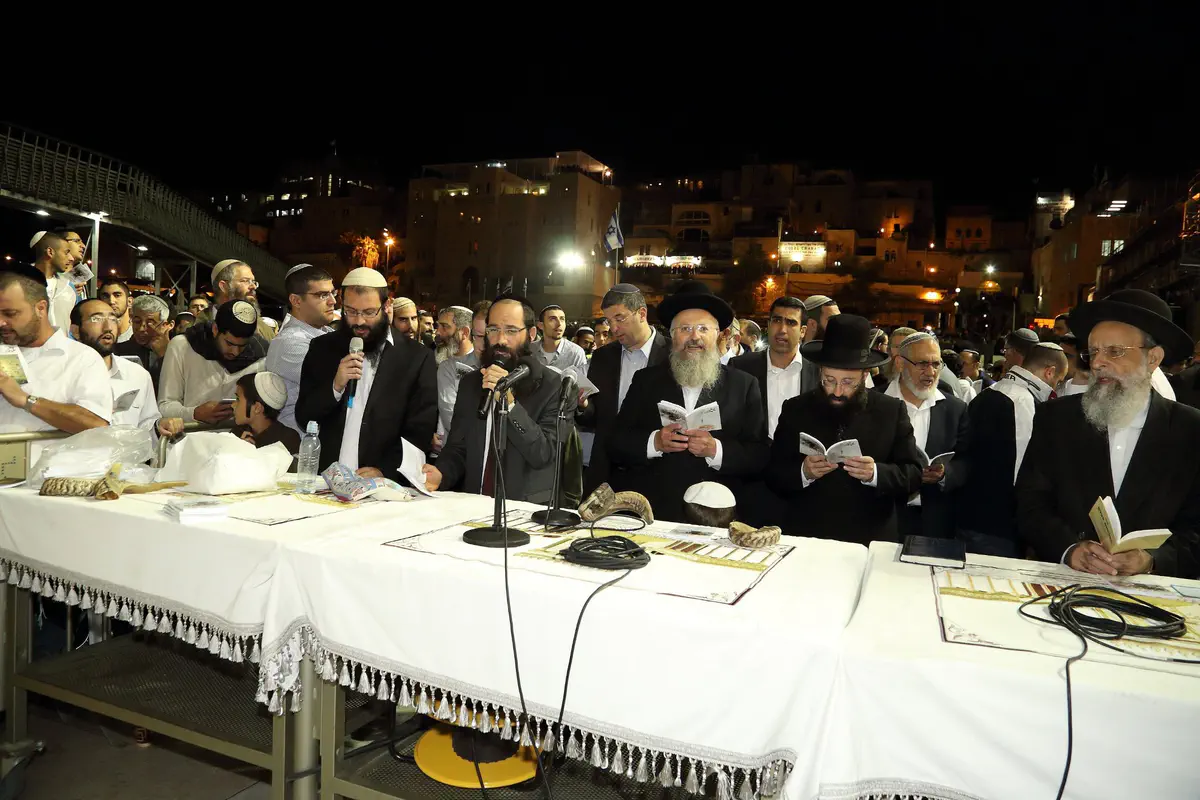 רבבות בני אדם מכל החוגים, מכל הסוגים וגם יהודים שאינם שומרי מצוות הגיעו בחצות לרחבת הכותל המערבי לעצרת סליחות המונית שהוביל רבה של צפת, הרב שמואל אליהו ועמו רבני קהילות על קהילותיהם במאות אוטובוסים מכל קצות הארץ.