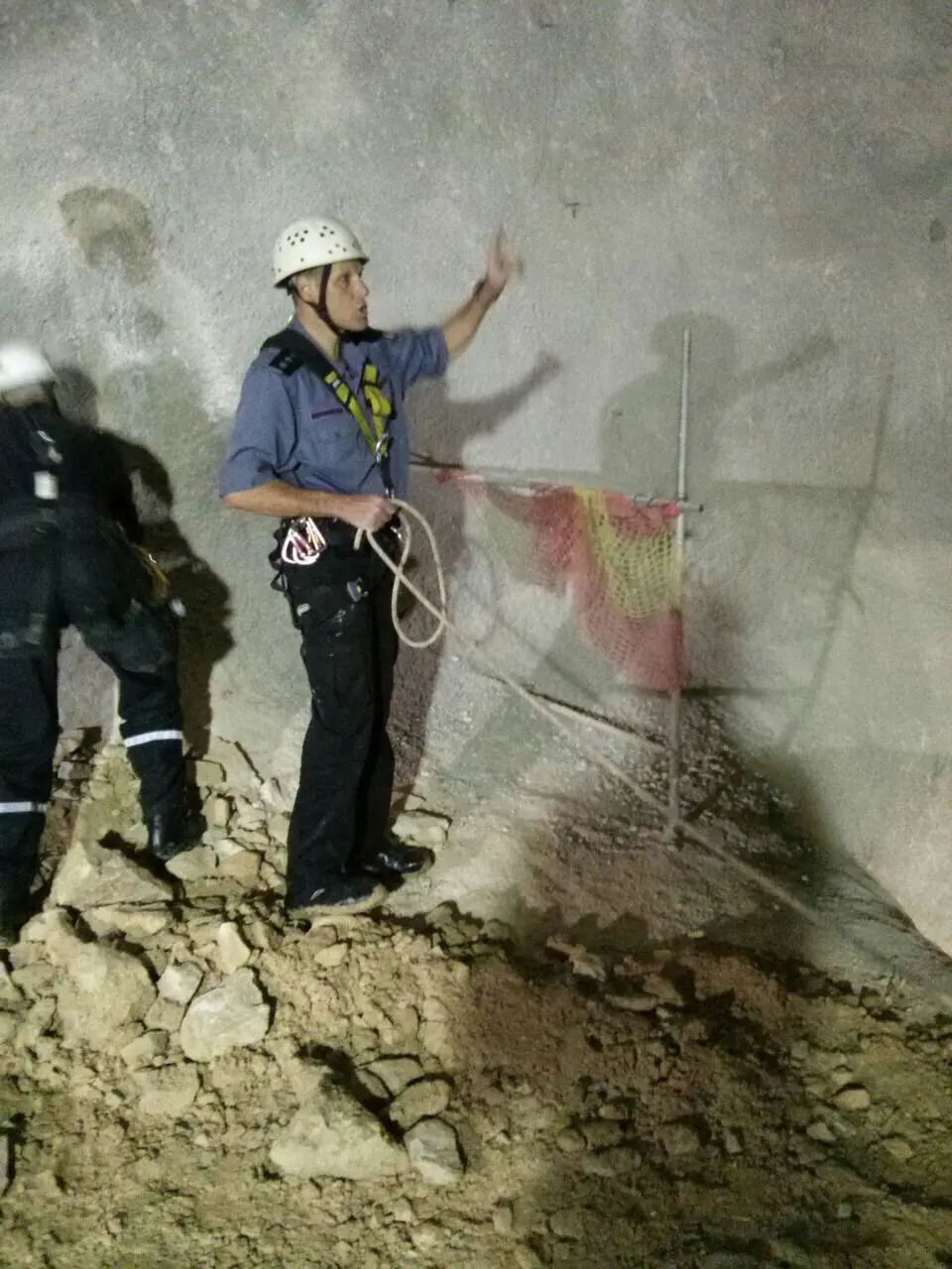 העובדים דיווחו כי הם לכודים בתוך פיר איוורור של מנהרת הרכבת, בעומק של כ-25 מטרים בתוך האדמה. העובדים הוסיפו כי עגורן שתפקידו היה להוציא אותם משם אינו תקין.