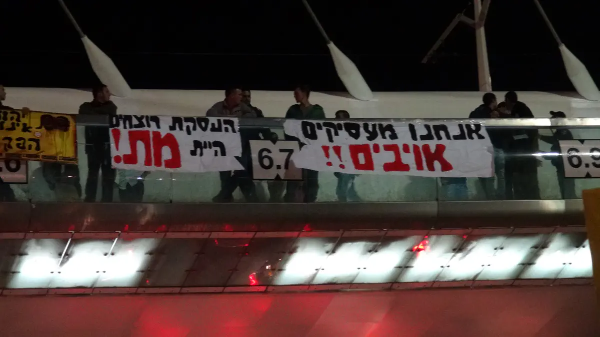 שלוש מאות פעילי ארגוני 'עוצמה יהודית' ו'להבה' הפגינו הערב (שלישי) בכניסה לעיר ירושלים, סמוך לגשר המיתרים, וקראו קריאות 'נקמה' ו'אהרונוביץ תתפטר דם יהודי אינו הפקר'.