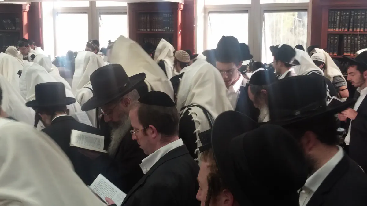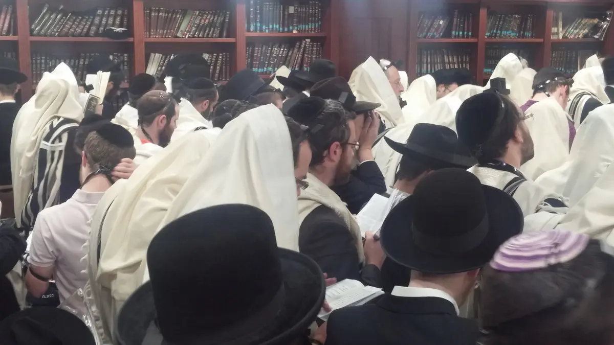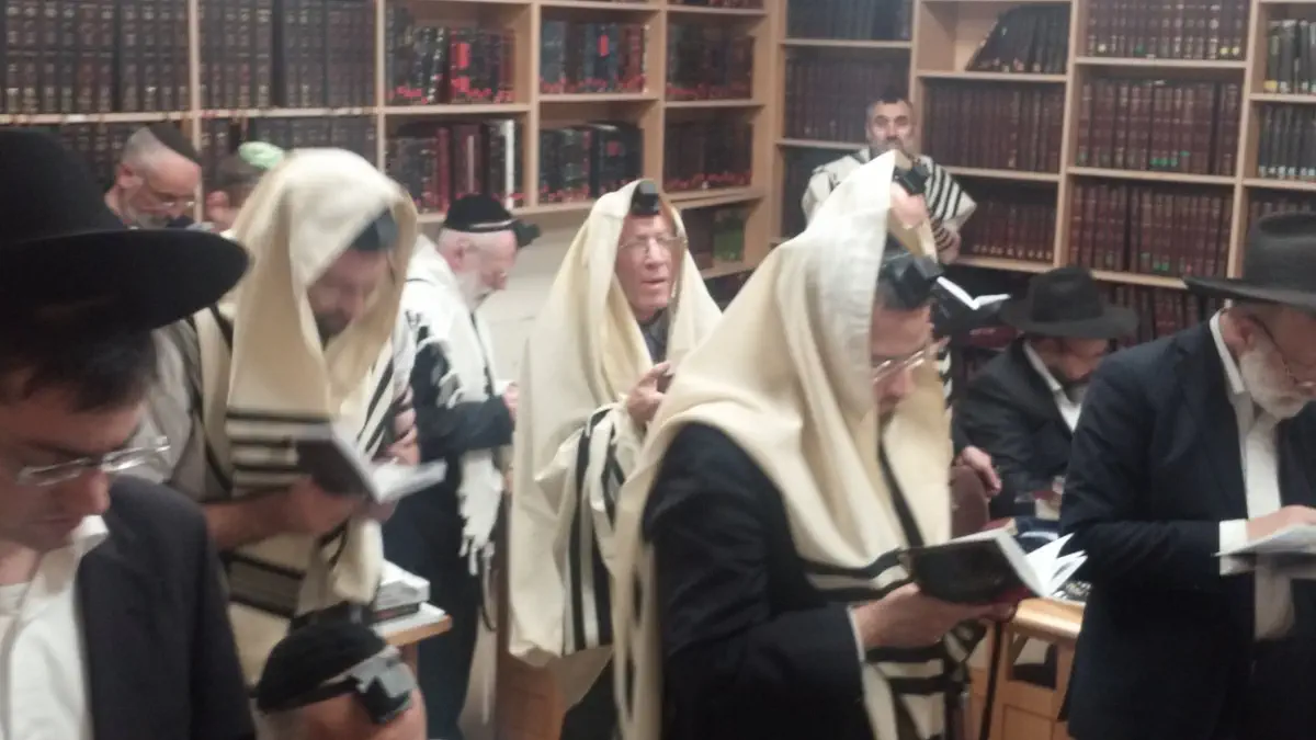 המתפללים הגיעו עטופים בטלית ותפילין ולפני התיבה עבר ראש ישיבת קריית מלך, הרב שמואל בורנשטיין.
