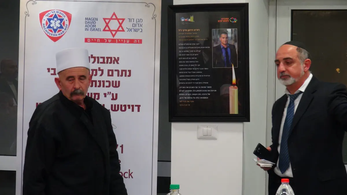 מרגש. בני משפחות הנרצחים בטבח שאירע בשבוע שעבר בבית הכנסת בשכונת הר נוף בירושלים, התכנסו הערב (חמישי) למפגש זיכרון וחנוכת אמבולנס על שמם של חמשת הנרצחים.