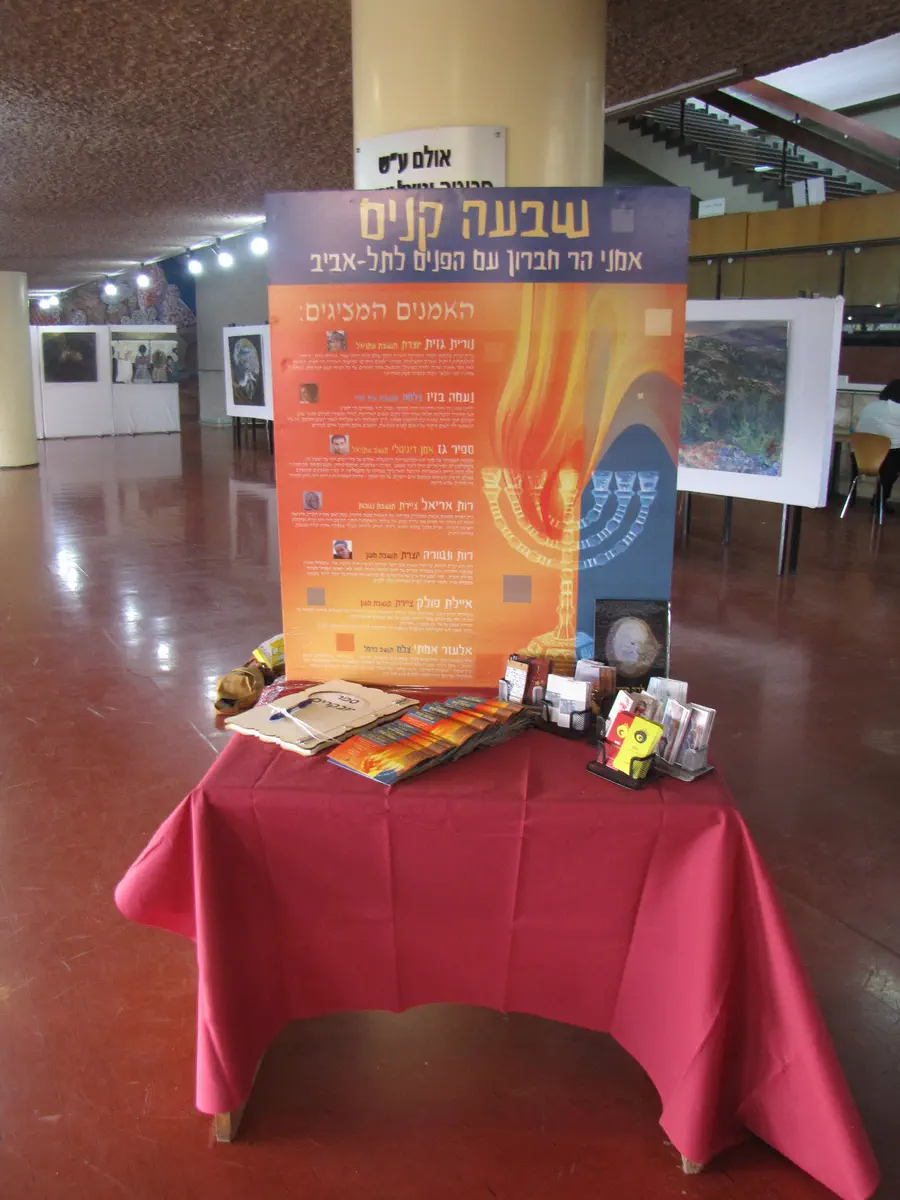 "שלחתי עבודות, הם ראו וקיבלו בשמחה. זה עבר את הוועדה וביום שלישי שעבר התערוכה נקלטה באוניברסיטת תל אביב כשמנהלת הספרייה והאחראית מסתכלות מדי פעם. כשהשלמנו את ההצבה שלה הן ממש נפעמו", מספרת גזית ומציינת כי לקראת ההצגה של היצירות הכינה שלט גראפי גדול ובו נכתב שמה של התערוכה 'שבעה קנים - אמני הר חברון עם הפנים לתל אביב'. השלט הזה, ככל הנראה הוא שהחל את כל הסערה.