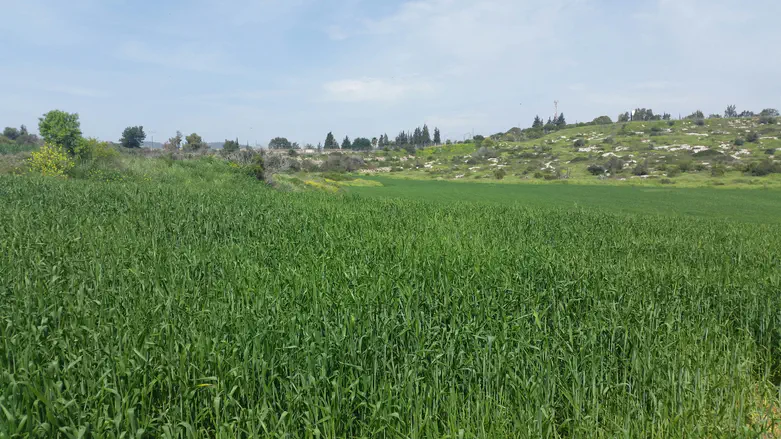 הדרך לגליל התחתון עוברת בתוך שדות חיטה ירוקים.