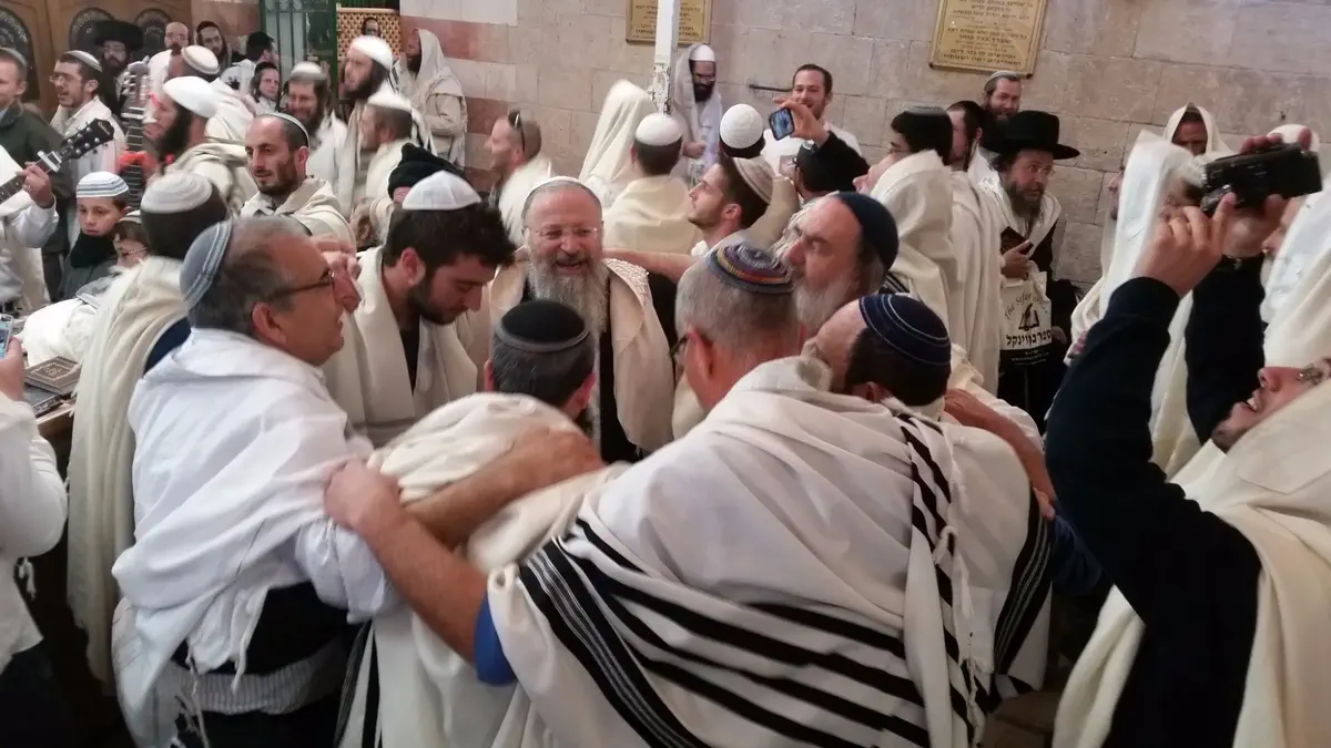 הרב אליהו הוסיף כי "מה שאנחנו עושים - אנו מתאמנים לשמחה לקראת השמחה הגדולה של בית המקדש, מתאמנים להרחיב את הלב. אנחנו מבקשים מהציבור לפתוח את הלב ולקיים את מצוות שמחה מדאוריתא. בדיוק כמו מצוות אכילת מצוה או כל מצווה אחרת. בסיום התפילה ניגשו המתפללים אל הרב להתברך ולקיים 'קבלת פני רבו' ברגל".