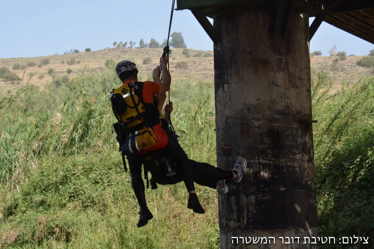 תרגיל תצוגה של מתנדבי יחידת חילוץ גולן, התקיים היום (רביעי) בגשר אריק בצפון, במעמד המפכ"ל רב ניצב יוחנן דנינו, מפקד מחוז צפון ניצב זוהר דביר וראש אגף המבצעים ניצב אהרון אקסול.