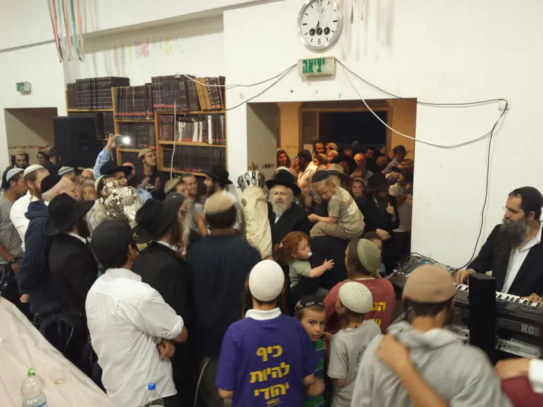 לאחריו יצאו התלמידים ומאות החוגגים בתהלוכה עם ספרי התורה, בשירה וריקודים לבית המדרש הקבוע של הישיבה, שם התקיימה התוועדות חגיגית עם נשיא הישיבה הרב יצחק גינזבורג.
