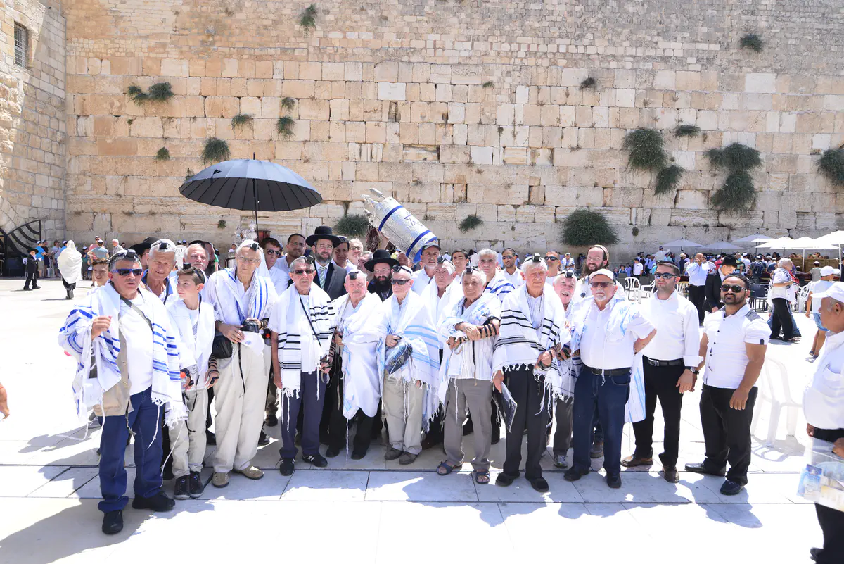 הטקס החל בשירה וריקודים בכניסה לכותל. ניצולי השואה הניפו את דגלי ישראל באוויר ושרו "הבאנו שלום עליכם" ו"עוד אבינו חי" עם הנוכחים במקום. מיד לאחר מכן נכנסו לרחבת הכותל ושם נערך הטקס. חתני בר המצווה הניחו תפילין וקראו בתורה כשסוכריות נזרקות לעברם.