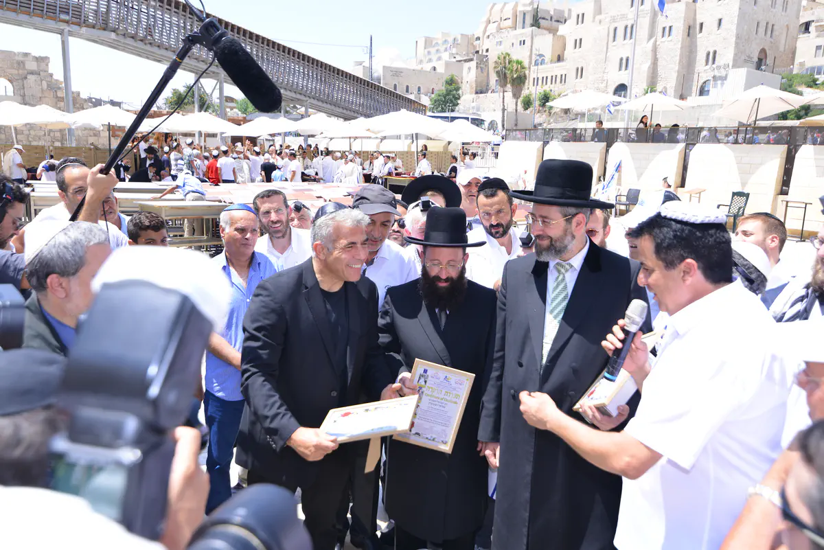 הרב הראשי לישראל הרב דוד לאו, רב הכותל הרב שמואל רבינוביץ', ויו"ר שדולת ניצולי השואה בכנסת, ח"כ יאיר לפיד (יש עתיד) ערכו היום (שני) טקס בר ובת מצווה לכ-30 ניצולים וניצולות שואה שלא זכו לקיים את הטקס בזמן השואה.