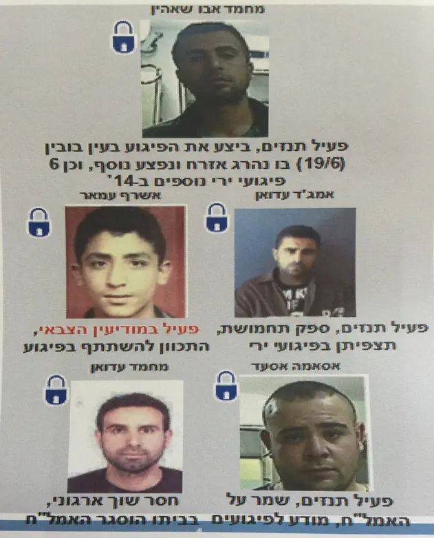 חברי החוליה הם מחמד אבו שאהין, בן 30, תושב קלנדיה, מחבל תנזים-פת"ח, בעברו פעיל כוח 17, אשר מקבל משכורת קבועה מהרשות הפלסטינית. לקראת ביצוע הפיגוע אסף מודיעין, והגיע למעיין מספר פעמים. כמו כן, במהלך שנת 2014 ביצע שישה פיגועי ירי נוספים בהם הפיגוע בא-ראם שבו נפצע חייל.