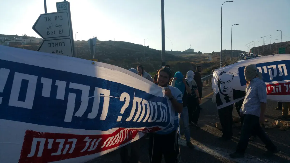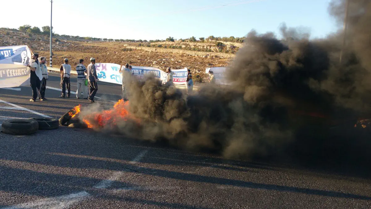 בעקבות הבערת צמיגים בכביש נחסם הצומת לארבעים דקות בשני הכיוונים. ארבעה פעילי ימין נעצרו בהפגנה.