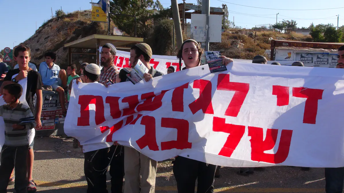 המפגינים קראו "בג"ץ גזעני" ונשאו שלטים עם סלוגן המאבק "די לגזענות של בג"ץ".