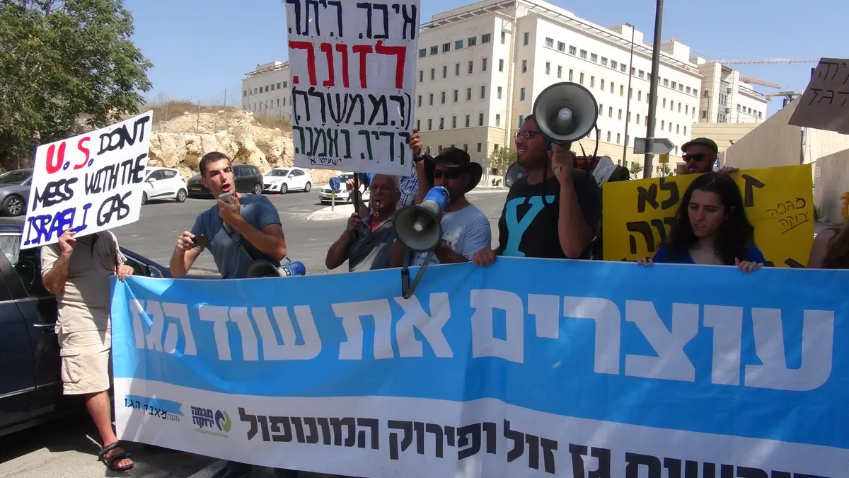 עשרות בני אדם הפגינו הבוקר (ראשון) בכניסה למשרד ראש הממשלה, שם מתקיימת ישיבת הממשלה שבה צפוי להיות מאושר מתווה הגז.