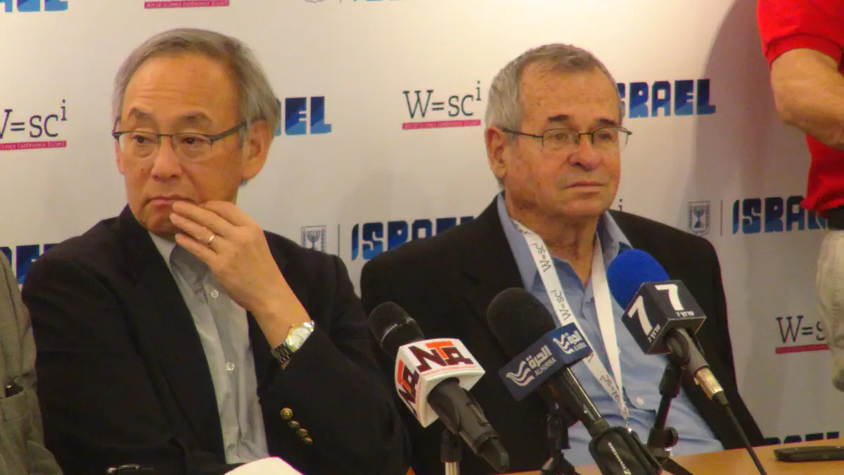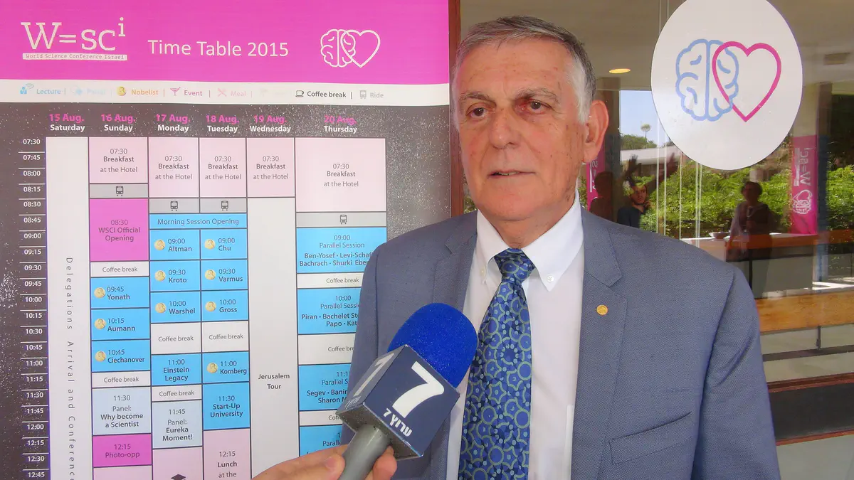 זוכה פרס נובל לכימיה, הפרופסור דן שכטמן ונשיא האוניברסיטה העברית, הפרופסור מנחם בן ששון, השתתפו אתמול (ראשון) בפתיחת כנס המדע העולמי המתקיים בקמפוס האוניברסיטה העברית בירושלים וסיפרו לערוץ 7 על המדע הישראלי וכיצד להתמודד עם ניסיונות החרם על ישראל.