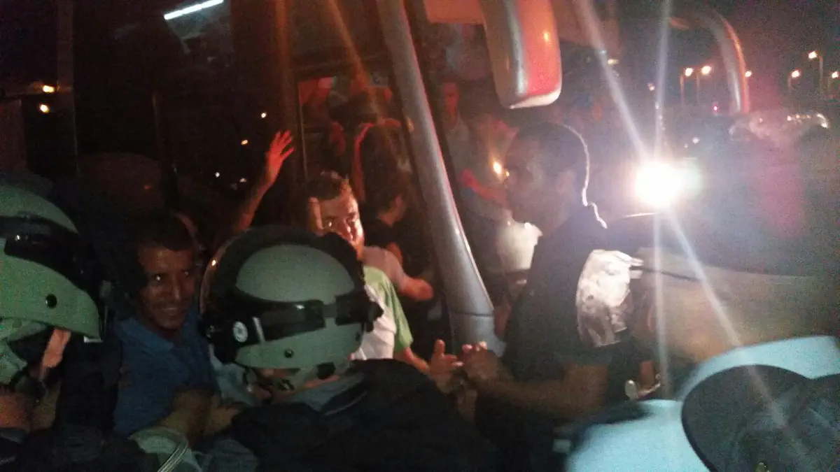 הרוחות התלהטו הערב (ראשון) בצומת אשקלון. מאות יהודים וערבים הפגינו לא הרחק מבית החולים ברזילי, בו מאושפז המחבל שובת הרעב שמצבו קשה ונמצא בסכנת חיים.