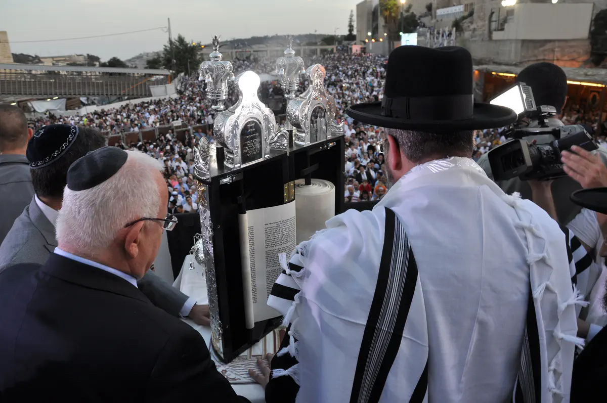 ברחבת הכותל המערבי נערך בשעה זו טקס מרגש של הכנסת ארבעה ספרי תורה מהודרים לרחבת הכותל המערבי – 'זכר להקהל' ולשמחת בית השואבה במעמד רבבות אלפי ישראל.