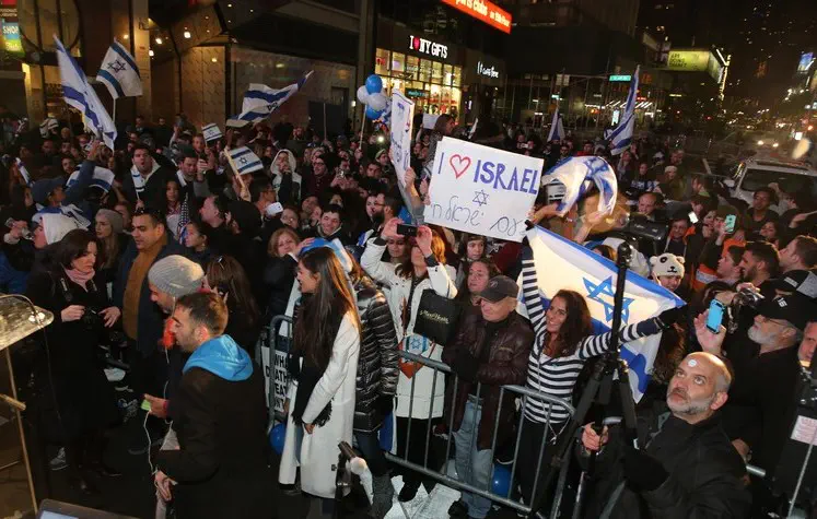 אלפי בני אדם השתתפו הלילה (שני) בהפגנת הזדהות עם תושבי מדינת ישראל שהתקיימה בטיימס סקוור במנהטן שבניו יורק. "אנחנו כאן בשביל ישראל", קראו ההמונים.